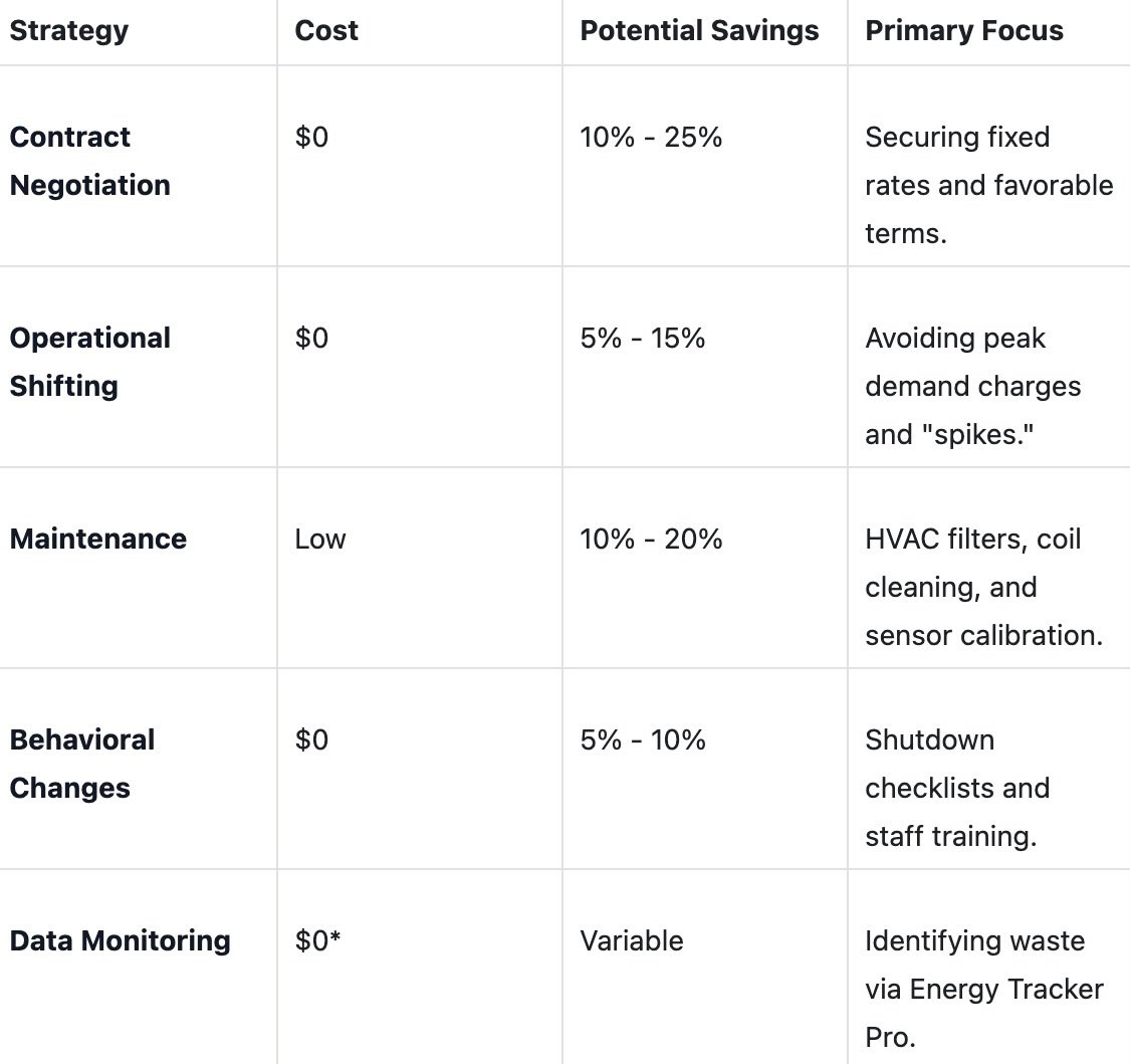 Ongoing Management: We don't just sign a contract and disappear. We monitor your usage through Energy Tracker Pro to ensure your efficiency strategies are working.